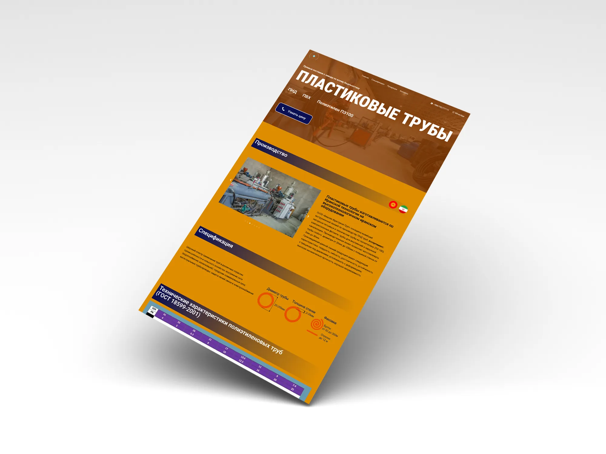 Клиенту нужен был простой сайт-витрина для демонстрации полного ассортимента выпускаемых пластиковых труб, но без отдельных страниц для каждого товара и без опции онлайн-покупки. Основная цель — показать сразу всю товарную линейку и обеспечить максимально быстрый путь от просмотра товара к оформлению заказа через WhatsApp.
